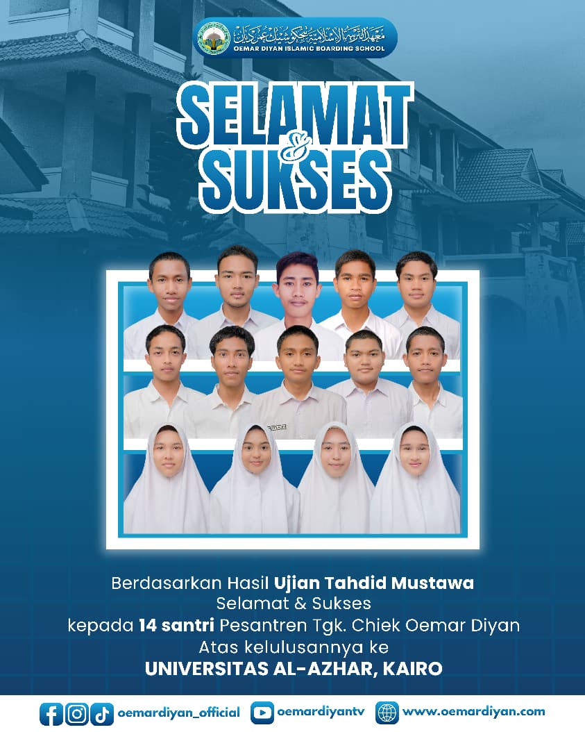 Pimpinan Pesantren Modern Tgk Chiek Oemar Diyan, Ustadz Fakhruddin Lahmuddin, M.Pd., menyampaikan apresiasi atas capaian tersebut. Ia menilai keberhasilan ini menunjukkan konsistensi pesantren dalam menyiapkan santri untuk melanjutkan studi ke Timur Tengah.
