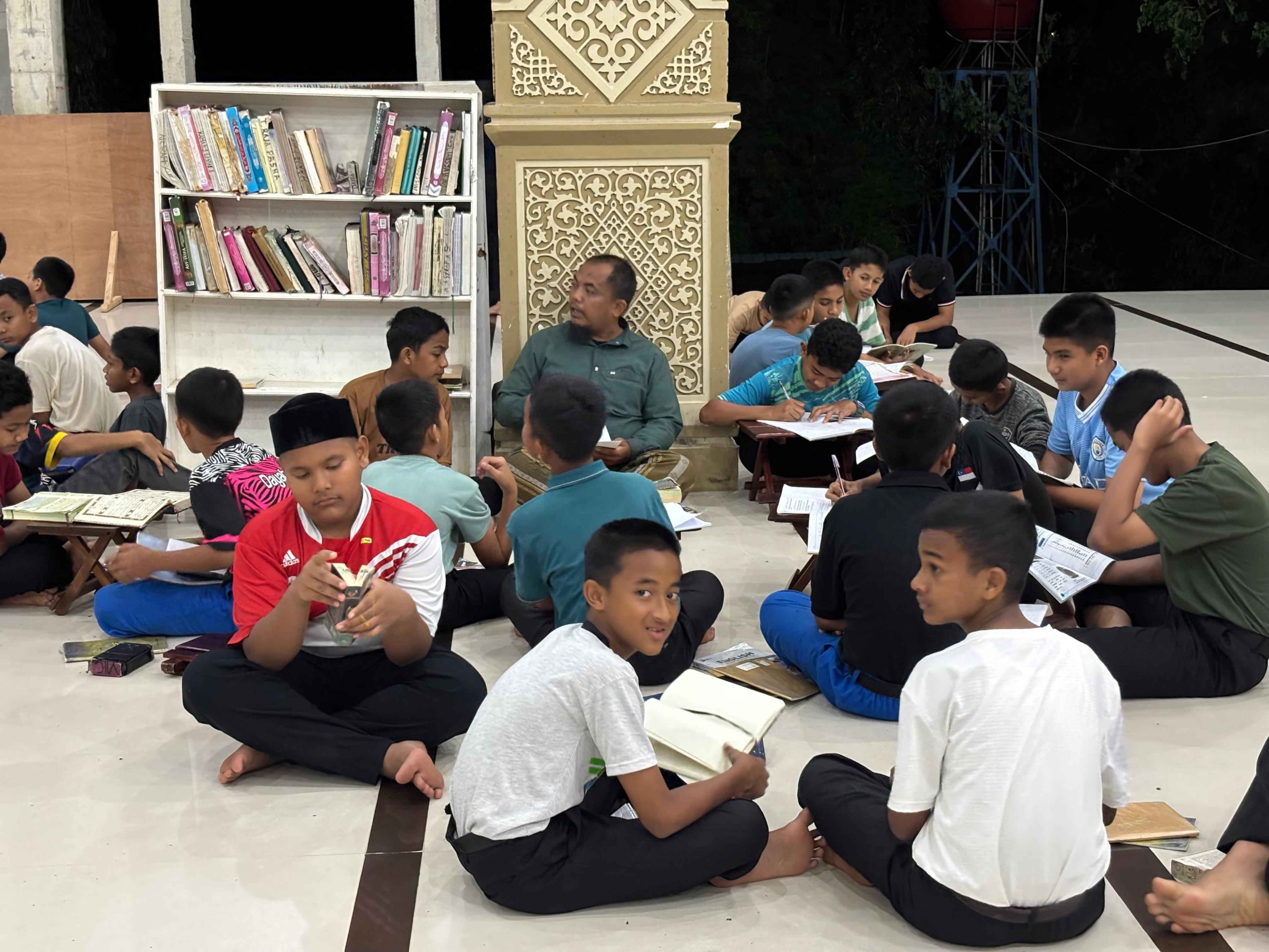 Terlihat dari dokumentasi yang diambil pada malam hari di Masjid Baburrayan, Oemar Diyan, Indrapuri, Aceh Besar, para santri duduk dalam kelompok kecil maupun individu, dengan buku di tangan, berdiskusi, membaca, dan mendengarkan penjelasan dari guru pembimbing.